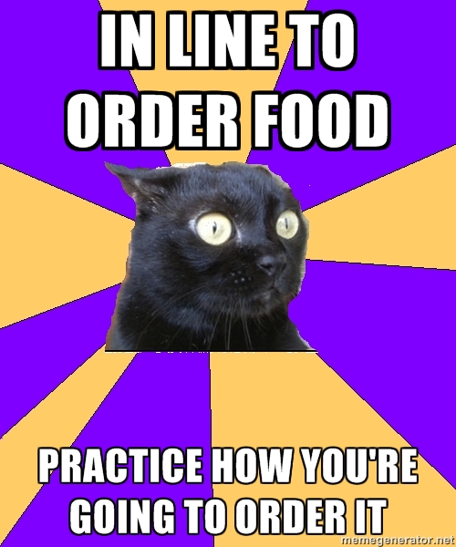Anxiety CatMany years later, after I was well schooled in the mental health system and seen various psychiatrists and psychologists. I had already been diagnosed with bipolar disorder and was in the throes of another depressive episode, but also dealing with extreme panic attacks. I melted down in a grocery store on an errand to buy napkins for my mother. There were simply too many choices and my heart started racing, I couldn’t breathe, and the aisles were closing in on me. The cacophony of the store was overwhelming and the I lights were too bright. I don’t even remember if I bought napkins in the end or if I just ran out of the store. At this time I had also lost the ability to order food in a restaurant. Whenever I went out for dinner with my then boyfriend (now husband) I would just order whatever he was eating.